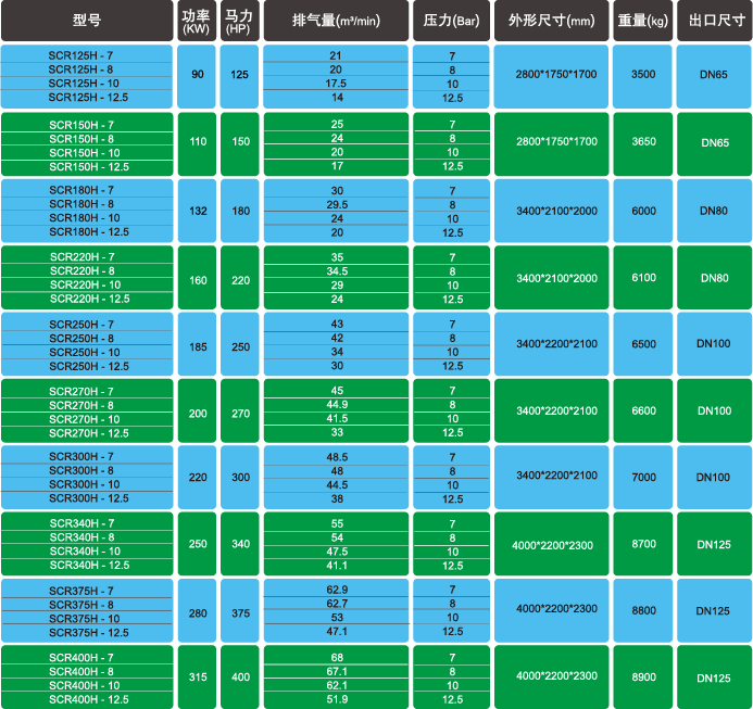 型号:SCR125H~SCR400H
